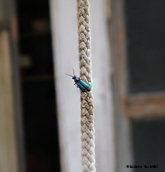 con grosso addome e elitre ridotte, le sue larve si nutrono negli alveari a spese delle uova delle api. Meloe proscarabaeus