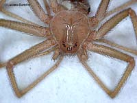 da cui deriva anche il nome comune (ragno violino). Possiede sei piccoli occhi (anziché otto come la maggioranza dei ragni) raggruppati in tre coppie di due.